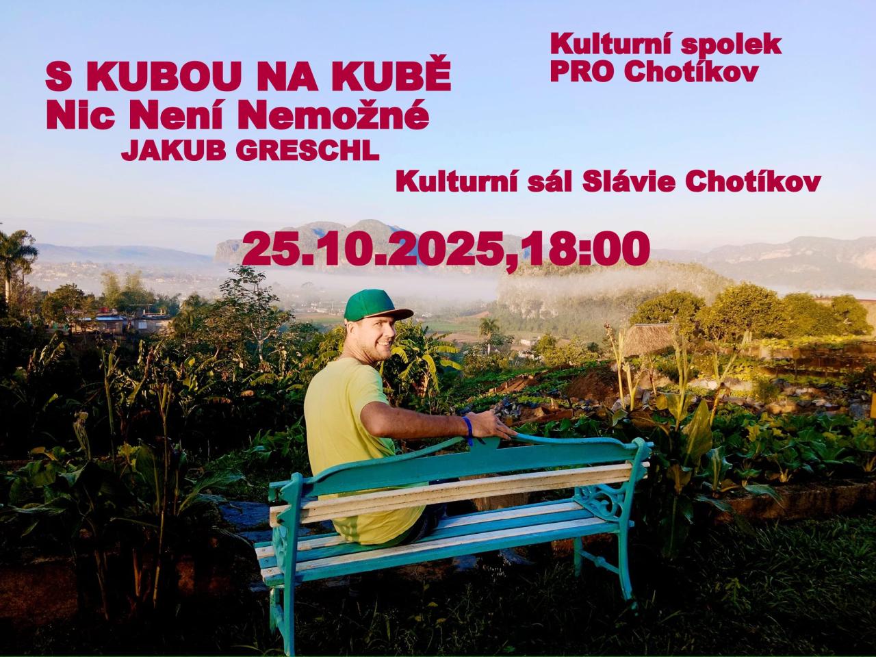Přednáška Jakuba Greschla se uskuteční dne 25. 10. 2025 od 18:00 hodin v kulturním zařízení Slávie.