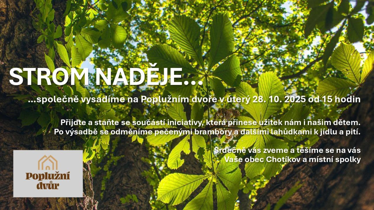 Přijďte s námi zasadit strom na Poplužním dvoře a užít si tuto nevšední událost dne 28.10.2025 od 15 hodin.