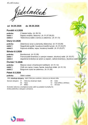Jídelní lístek ZŠ a MŠ Chotíkov na týden 04. 05. 2026 - 08. 05. 2026.