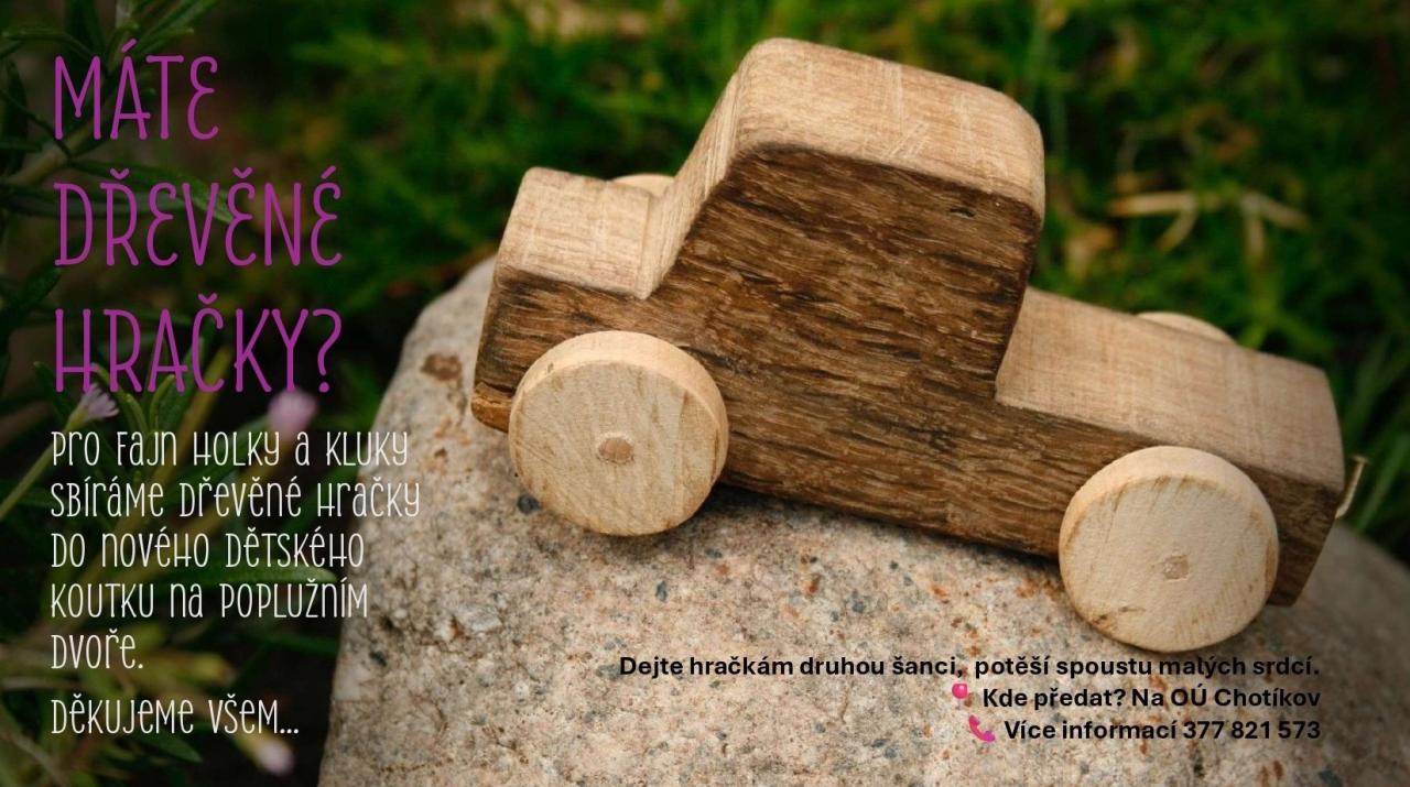 Hledáme dřevěné hračky do nově vznikajícího dětského koutku na Poplužním dvoře. Máte doma hračky ze dřeva, se kterými už si vaše dítko nehraje? Přineste je na podatelnu obecního úřadu a my jim dáme druhou šanci.