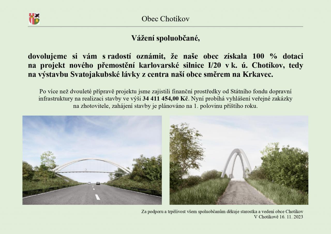 na projekt nového přemostění karlovarské silnice I/20 v k. ú. Chotíkov, tedy