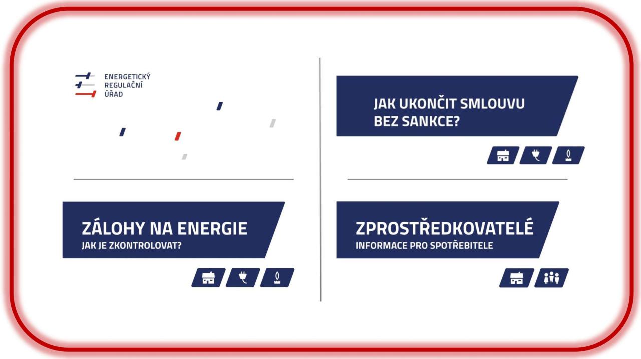 na níže uvedených odkazech máte k dispozici informační brožury vydané Energetickým regulačním úřadem (ERÚ). Materiály vám pomohou zorientovat se v problematice energií.