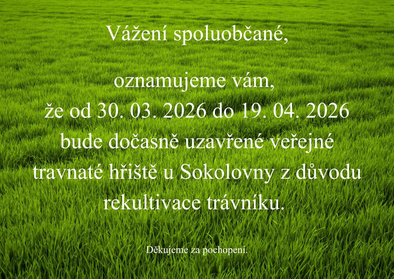 Dočasné uzavření hřiště u Sokolovny v termínu 30. 03. 2026 - 19. 04. 2026.