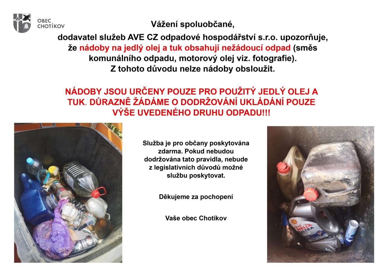 UPOZORNĚNÍ - NÁDOBY NA JEDLÝ OLEJ A TUK