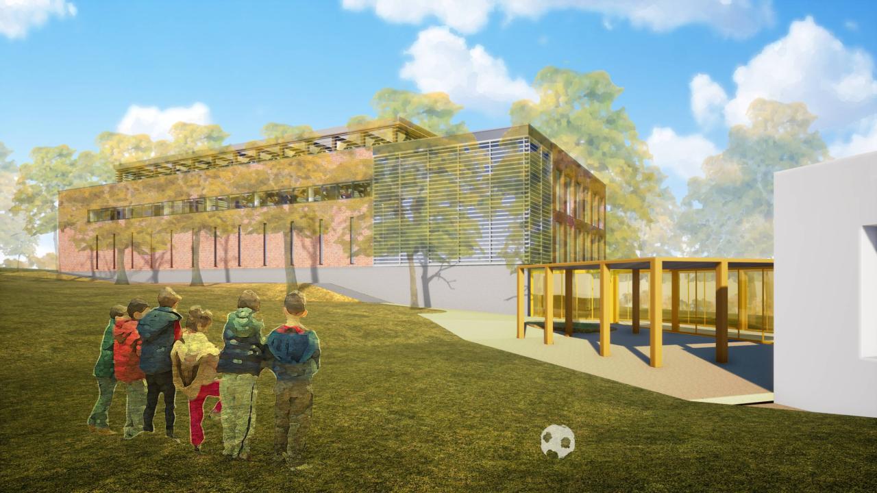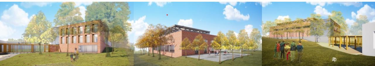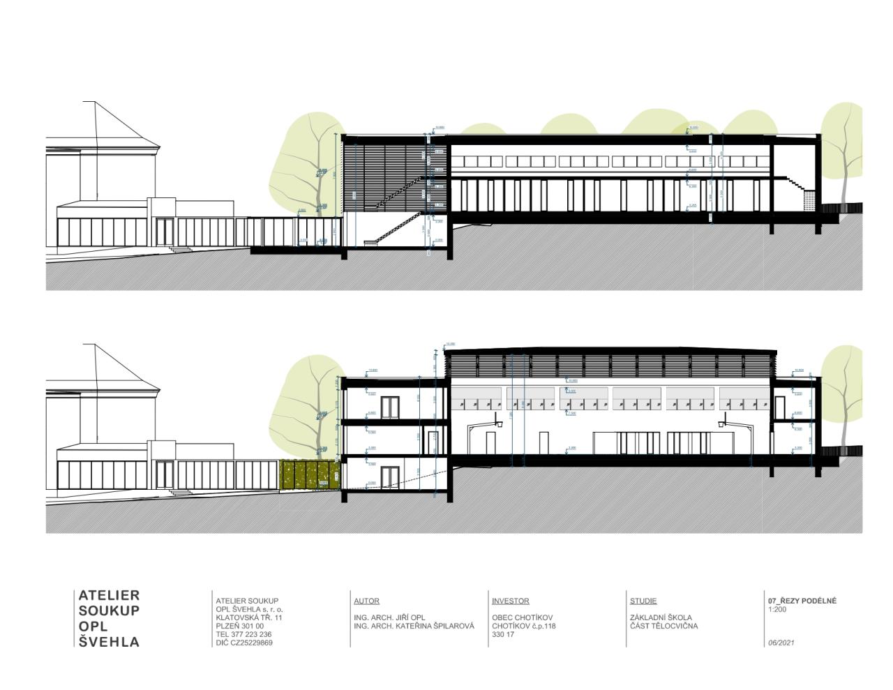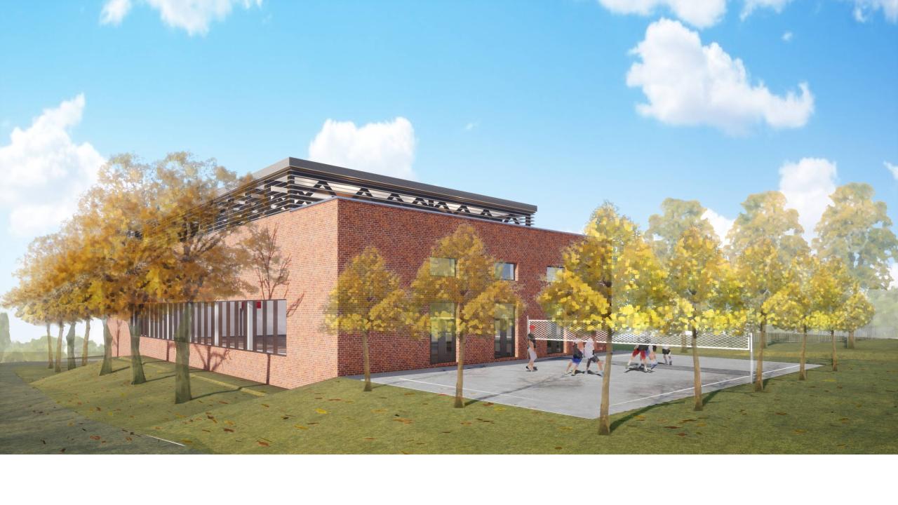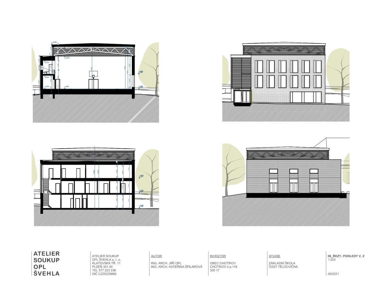 Celková koncepce nové tělocvičny respektuje polohu stávajícího objektu základní školy a